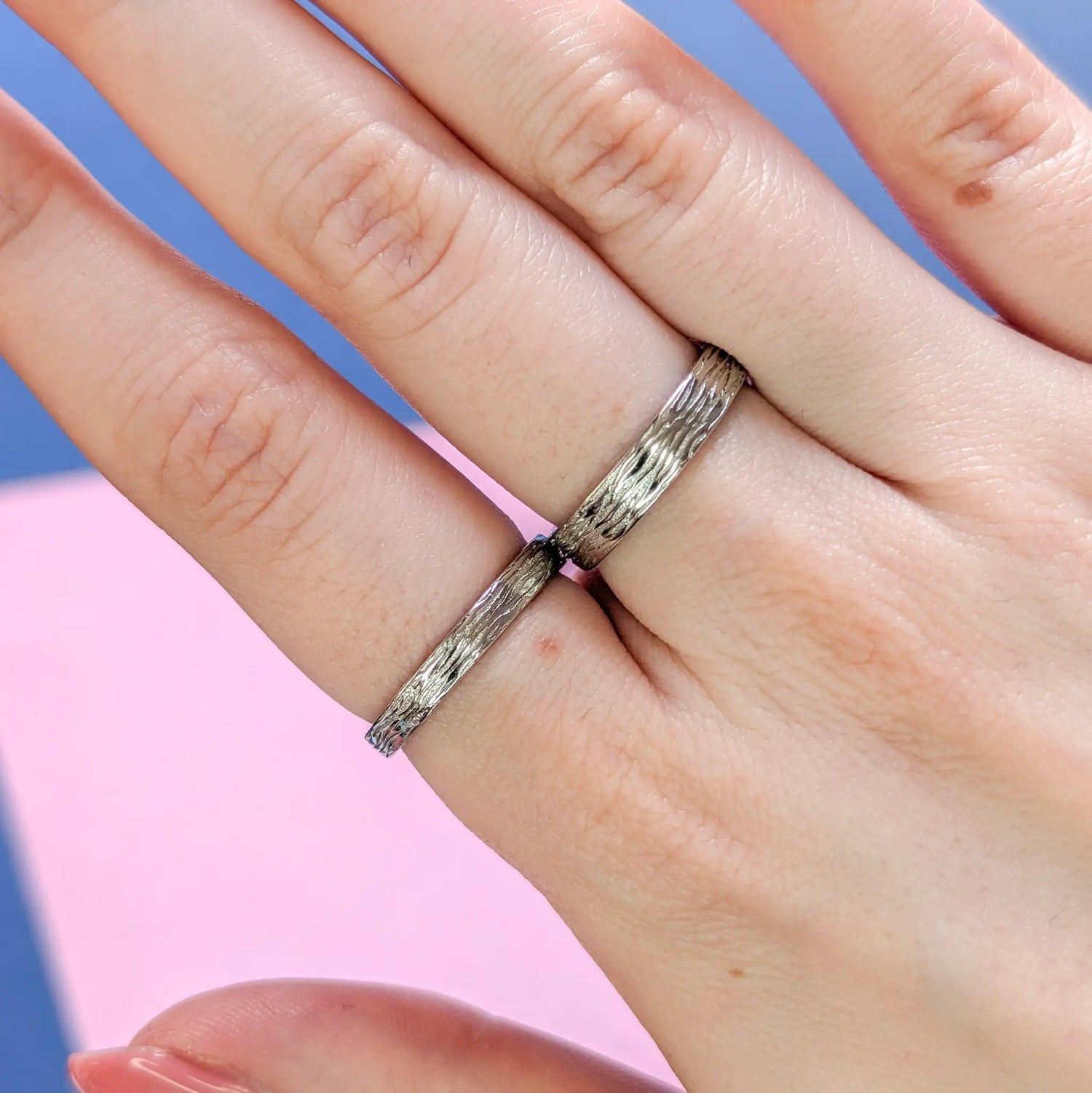 Nasze pierścionki wykonane są ze srebra 925, które pozwala na regulację rozmiaru. Możesz samodzielnie dopasować pierścionek do palca poprzez delikatne ściśnięcie lub rozchylenie.